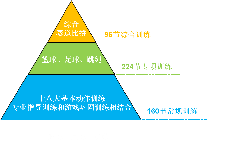 专项训练——篮球、足球、跳绳把游戏与健身、智慧、体能、个人与集体融为一体,使参加运动的幼儿在娱乐中强健了身体、陶冶了情操,在训练中磨炼了意志、在比赛中发扬集体主义精神。